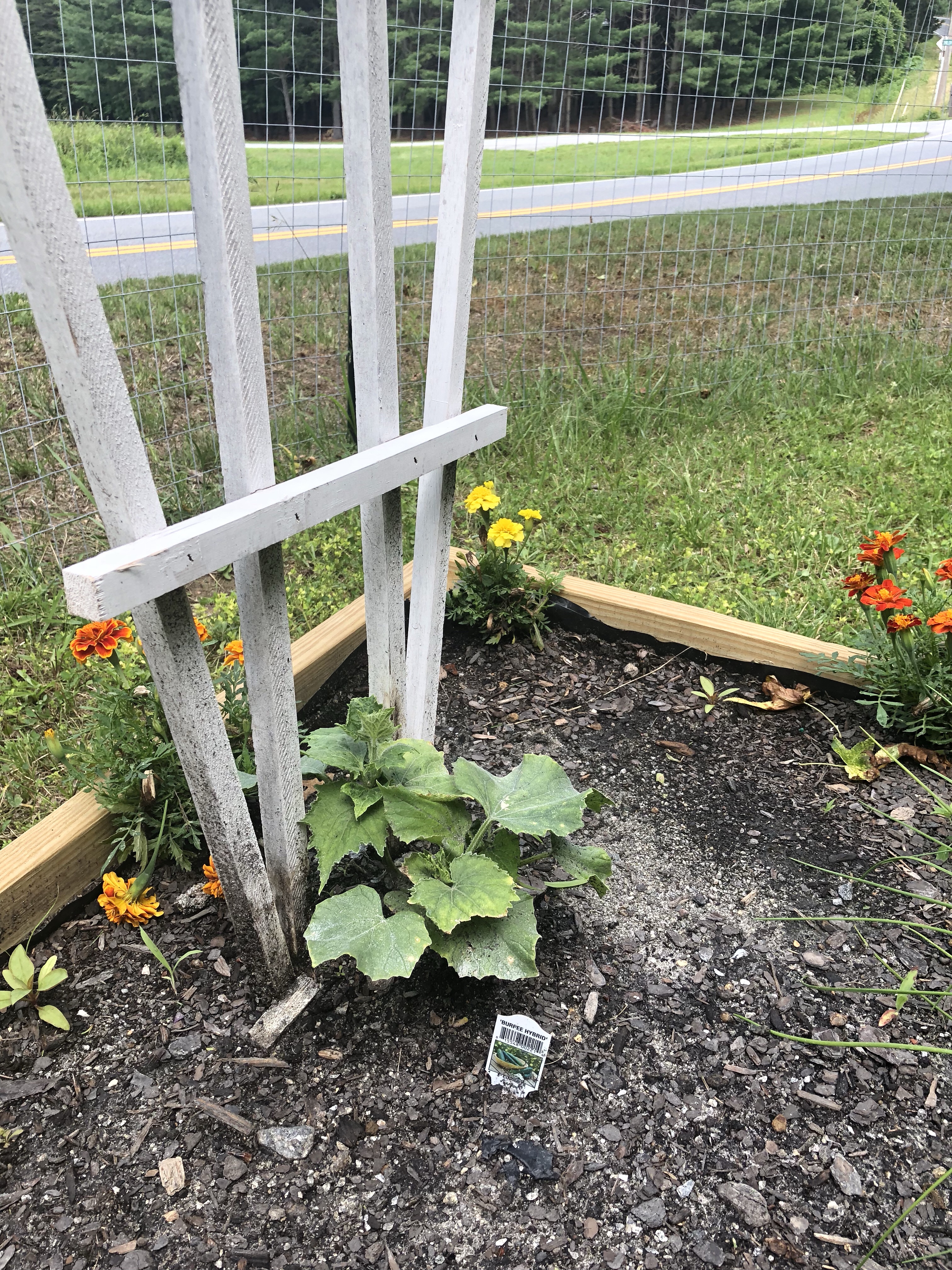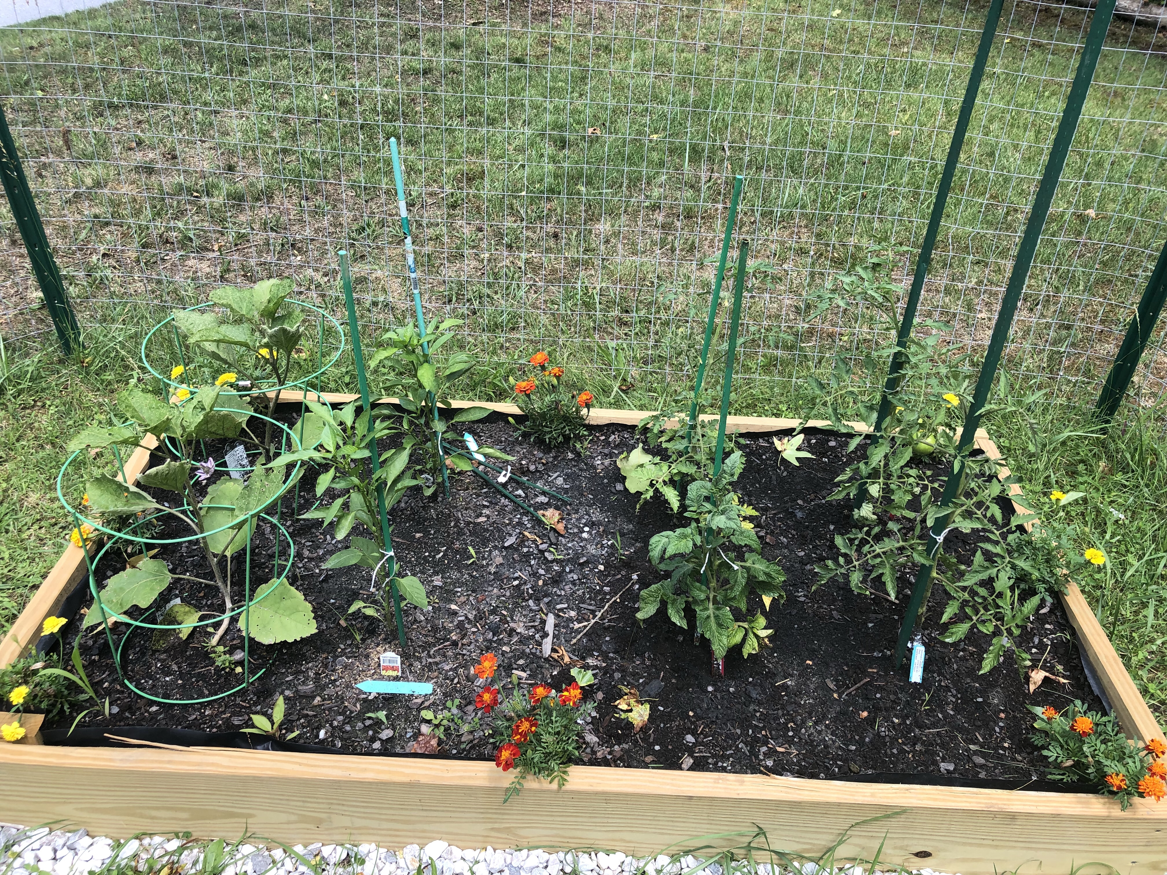 We then filled the beds with Bumper Crop and Lobster Compost. Before planting our precious plants we enclosed the entire area with fencing from tractor supply. Very easy to manage and get in and out of, and we haven’t had a single animal break in to our garden!